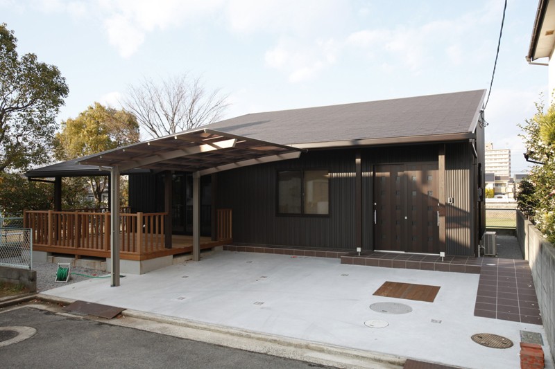 夫婦とワンちゃんの暮す 平屋の住まい広々ウッドデッキのある家