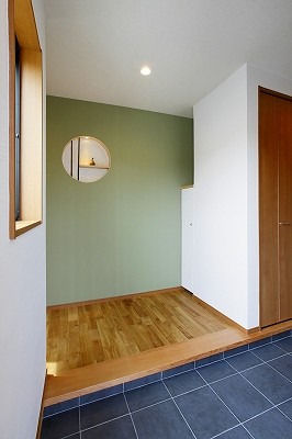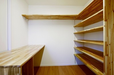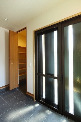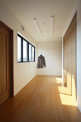 広々とした玄関には土間続きのシューズクロークと服を掛けることもできる収納を装備。