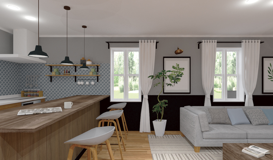 玄関ホールのないこの家は、まるっと家全体をひと続きにしたような繋がりのあるつくり。